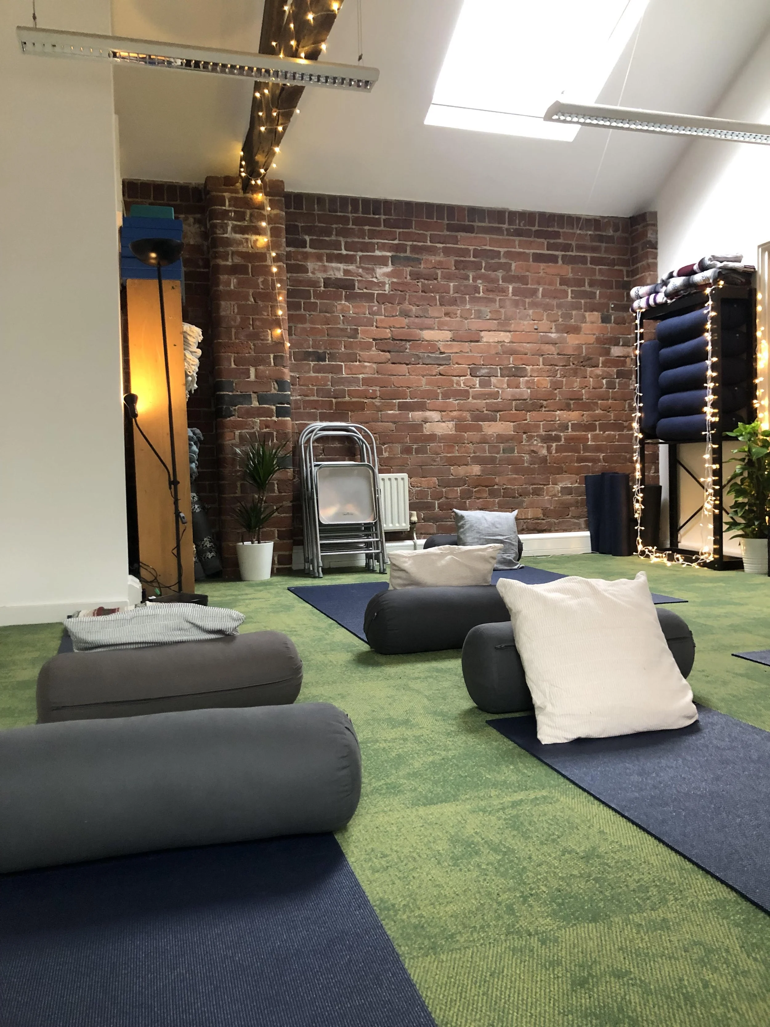 we always finish with a guided Yoga Nidra* relaxation in our final Restorative Yoga position